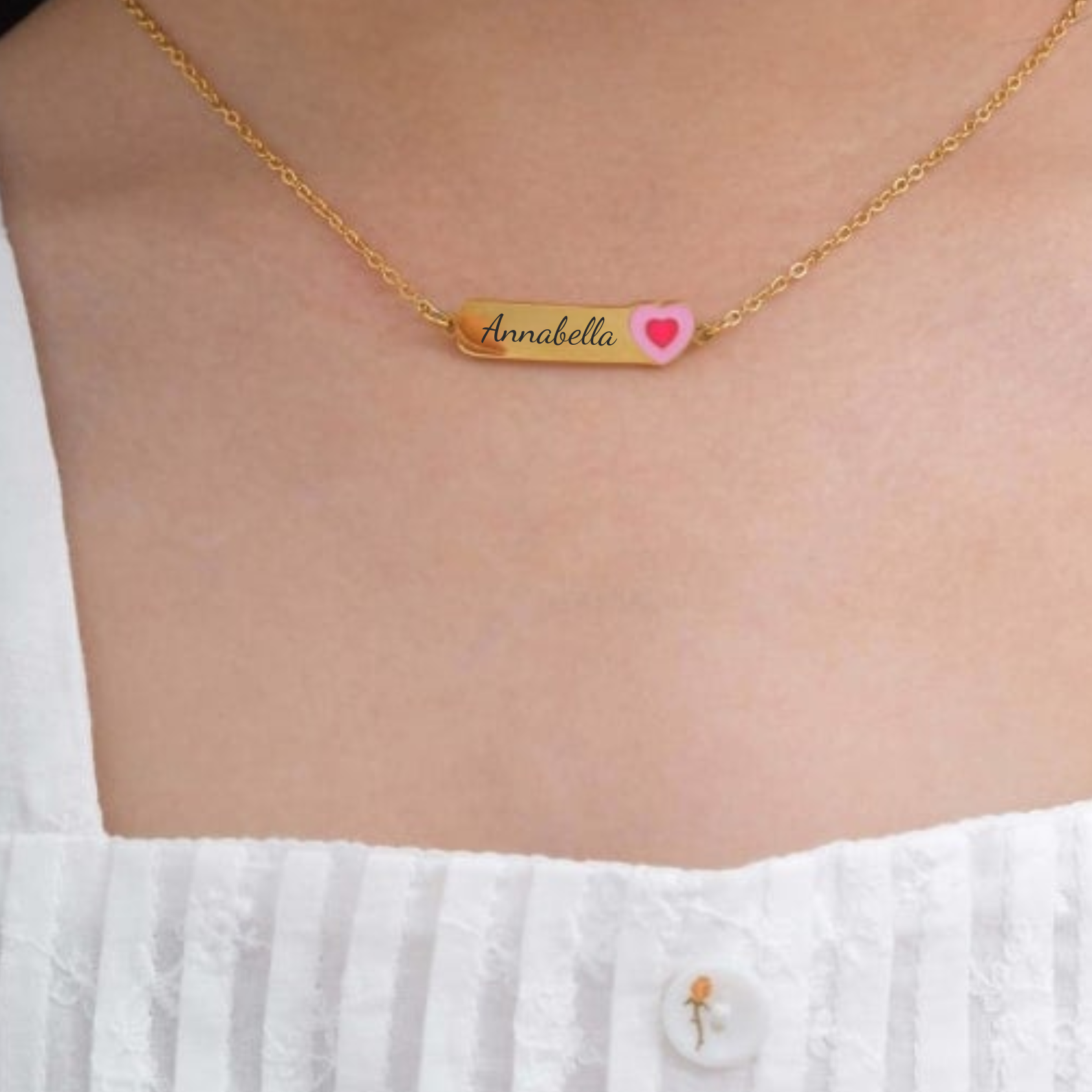 Children's Personalized Heart Name Necklace, Gold Stainless Steel, 3-12 Years (Manufacture Time: 1-2 Days)