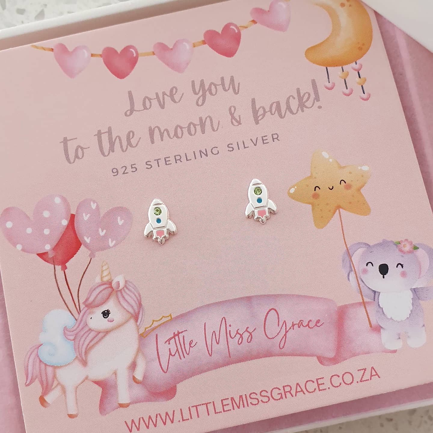 MG377 - 925 Sterling Silver Children's Rocket Earrings, Size 6x8mm