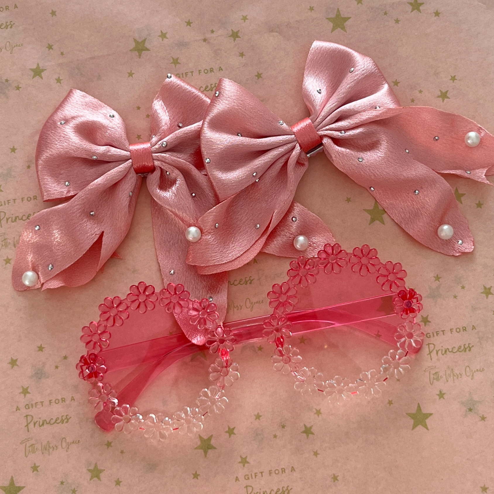 Flower Sunglasses with Pearl Bow Clips - Pink - R 89.00 ZAR