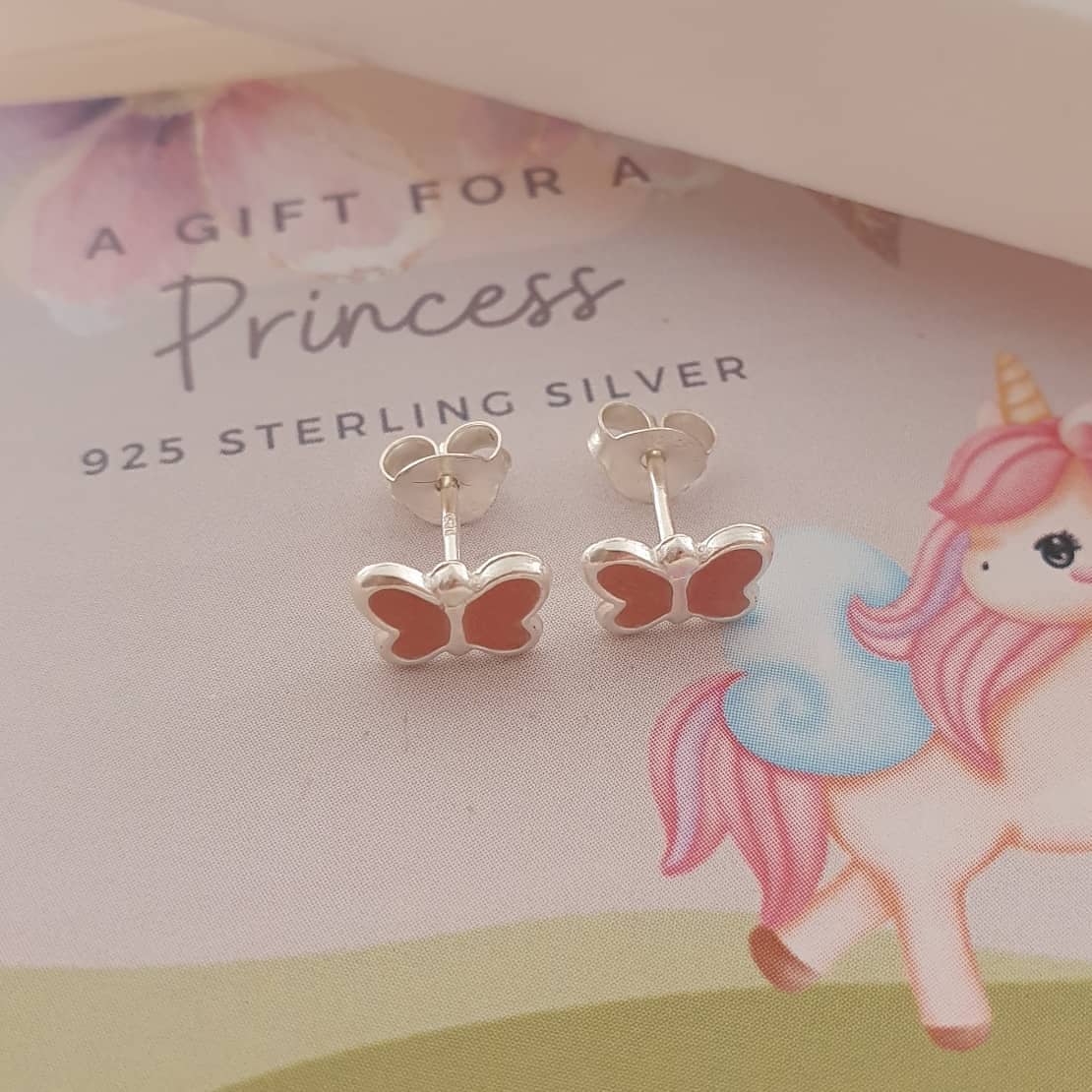 MG125 - 925 Sterling Silver Children's Pink Butterfly Earrings, Size: 8x5mm